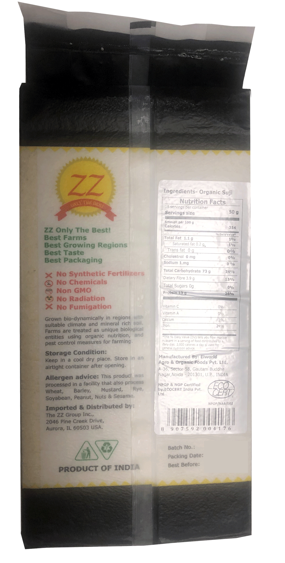 Organic Suji is totally free from adulteration, pesticides, chemicals, or additives. This Suji is packed with vital nutrients. It is used to make savory foods, like Rava dosa and upma, or puddings, like Kesari or sheera.