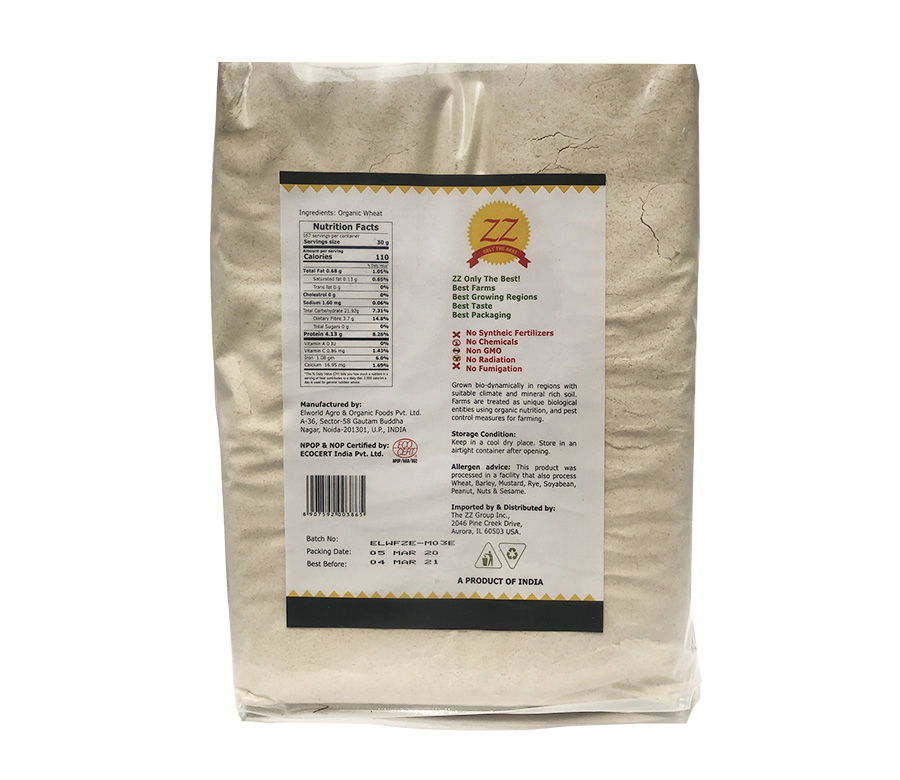 Our Organic Whole Wheat Atta is 100 % Organic, grown without synthetic pesticides, and grown without synthetic GMOs.It also provides a number of essential nutrients such as protein, vitamin B, and vitamin E in significant amounts which are beneficial for health. Rich in bran which contains a significant amount of dietary fiber which is good for our gut.
