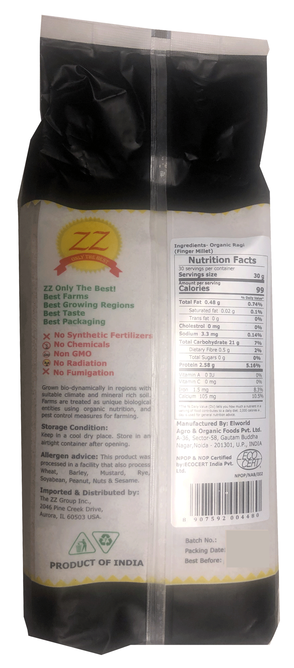 Ragi is a good source of complex carbohydrates, a fair source of protein and a good source of fiber, and very low in fat. Ragi flour/ Ragi Atta is rich in fiber and contributes towards fullness which contributes to achieving the ideal body weight. Organic Ragi flour/ Ragi Atta is made from unadulterated whole grain.