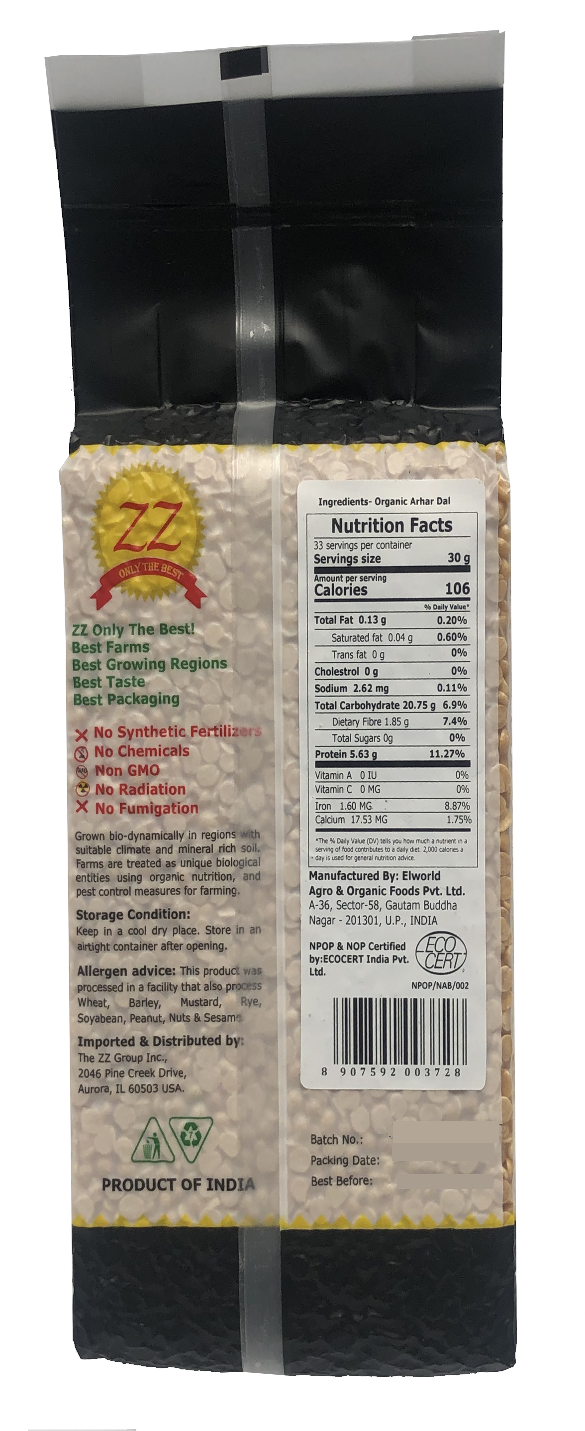 Grown Organically and sourced directly from farmers. Toor Dal is also called Arhar in the Northern part of India. It is also called Yellow Split Pigeon Peas.