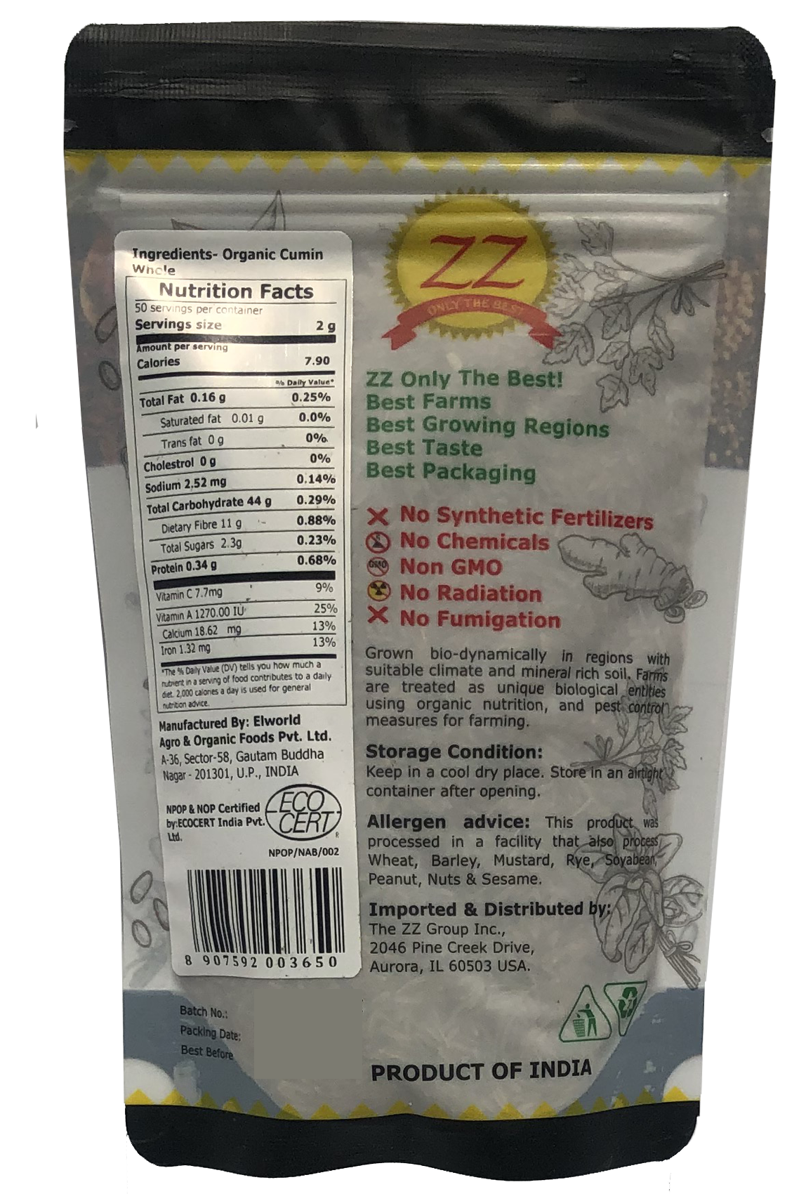 ZZ Organic’s Cumin Seeds/Jeera is used to enhance the taste of numerous dishes. These seeds have an earthy flavor that is perfect for tempering. Has a pleasant aroma that makes your food smell appetizing. Rich source of iron that helps prevent anemia. Improves digestion, and blood sugar control and reduces bad cholesterol. Use it for tempering subzis and dal or add it to dosa batter for a wonderful flavor.