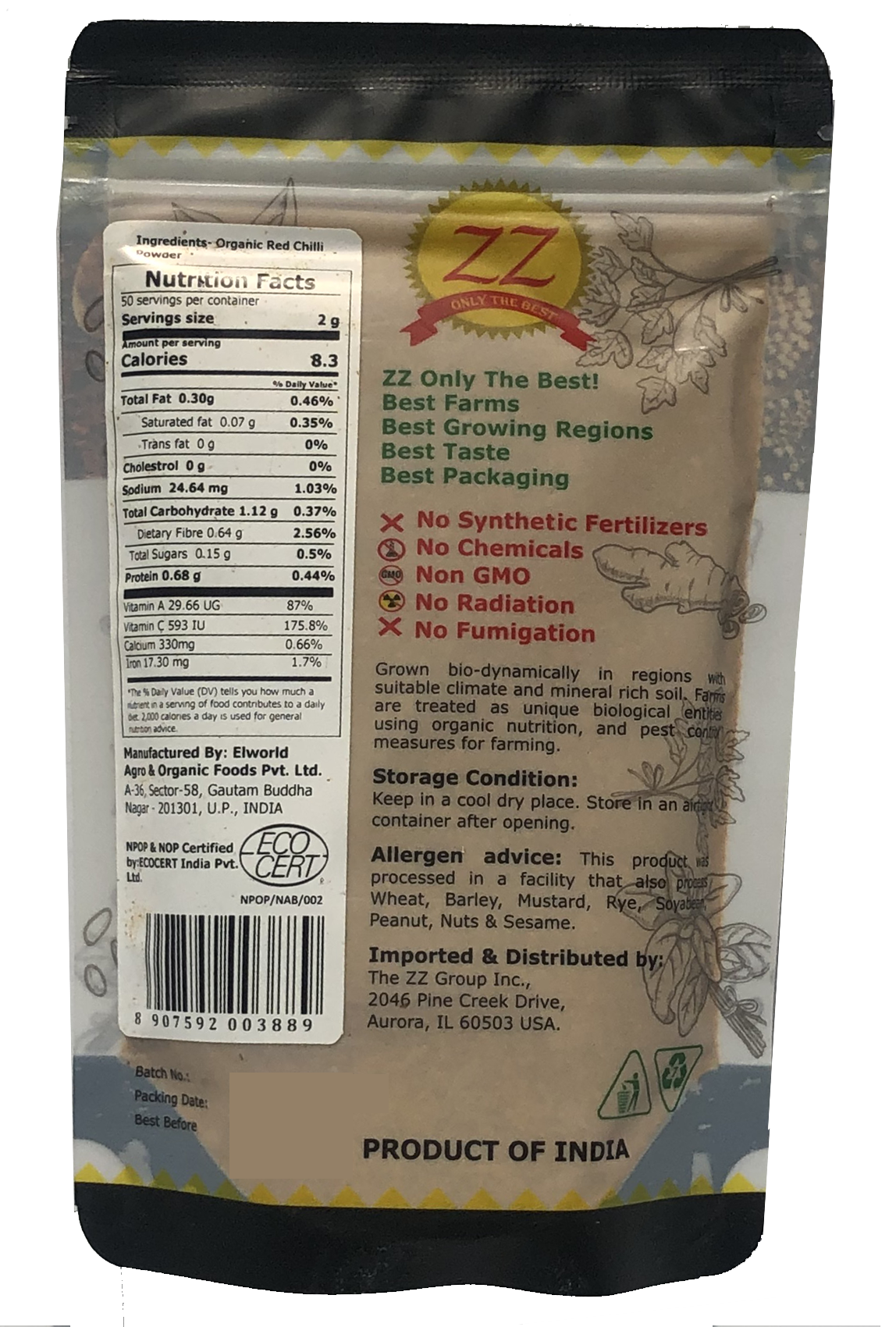 ZZ Organic red chili powder is the most popular spice ingredient used in food preparation. It is a whole spice that is cleaned and packed. It is widely used in dals and some royal vegetable dishes to add spice. It is effective in managing Metabolism and helpful in managing obesity.